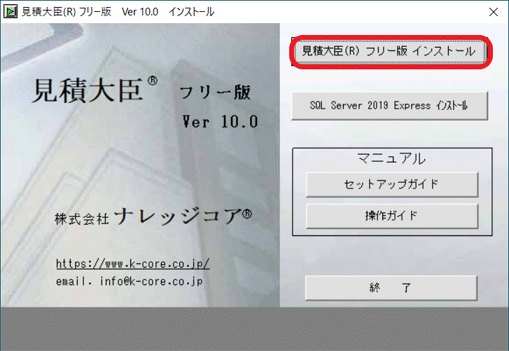 トップ > 見積大臣®シリーズ > フリー版(無料版) > インストール